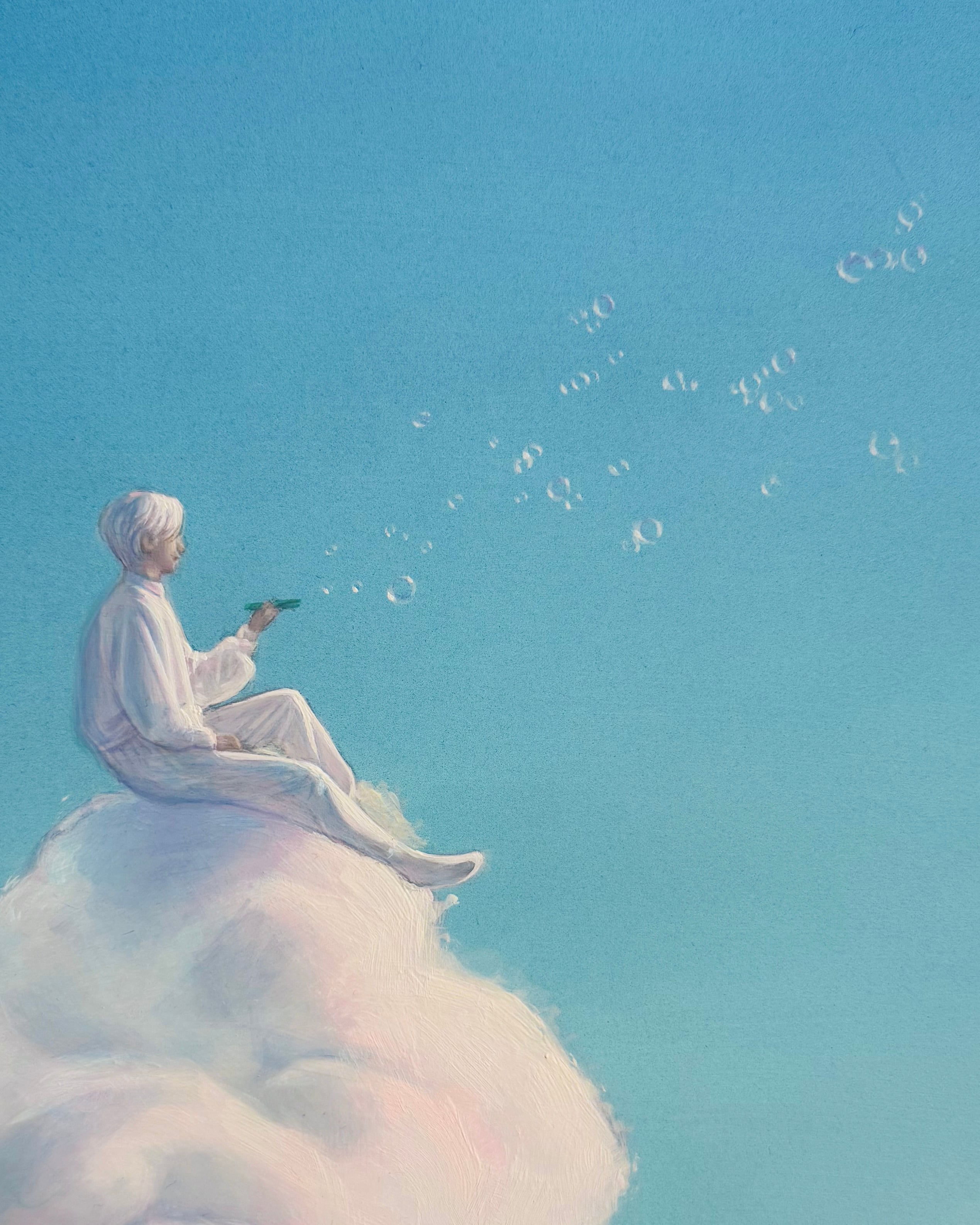 日々の役割や重力から少し離れた、軽くて贅沢な時間を絵にしました。